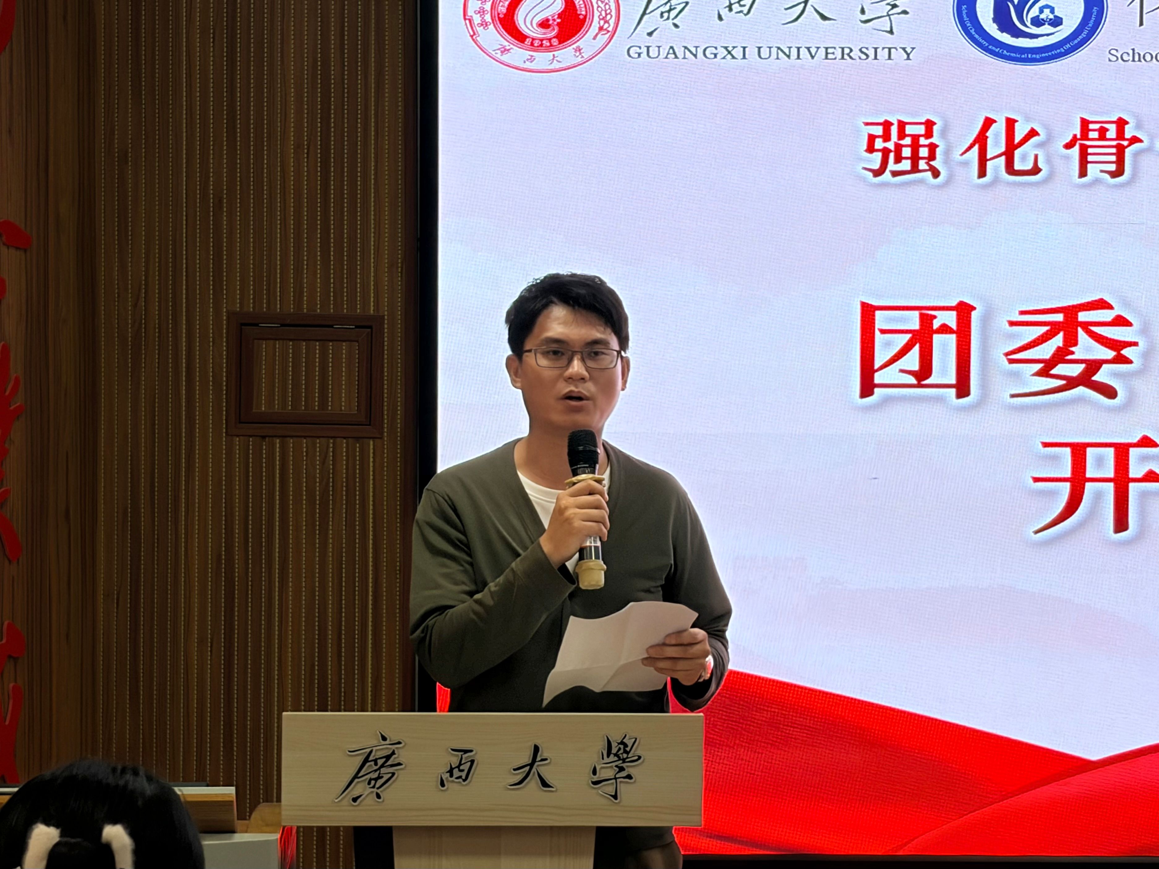 3月24日下午,800全讯白菜官方网站研究生会第一届骨干培训班在学院一号楼碳酸钙报告厅举行开班仪式。2023白菜网站注册大全团委副书记韦永睿,辅导员陈力源、杨秀泽、陈舞阳以及研究生会全体成员参加活动。