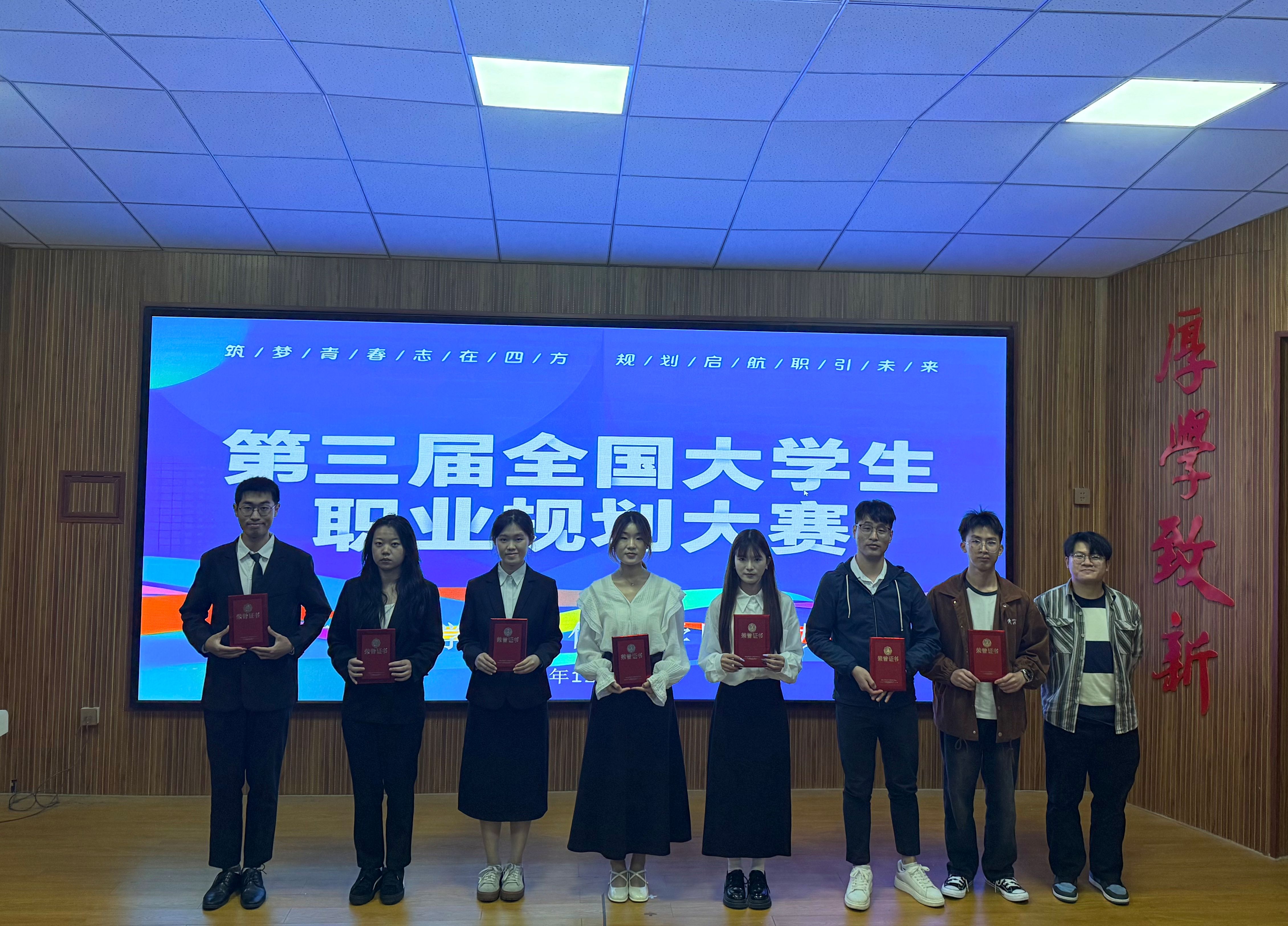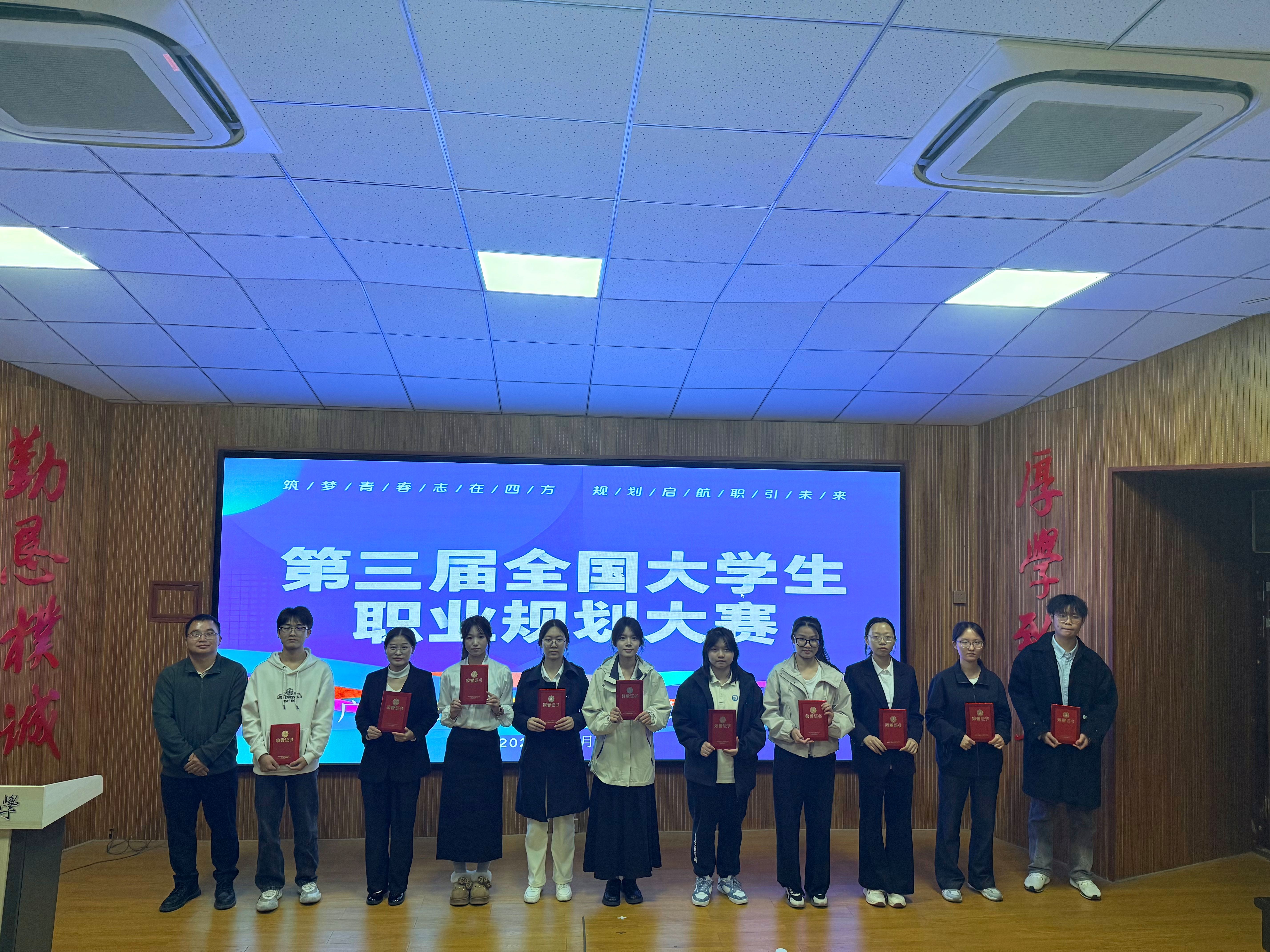 本次院级选拔赛设置成长赛道与就业赛道两大组别。成长赛道面向本科非毕业年级学生,重点考察职业目标确立、持续行动与动态调整的成长过程,引导学生树立正确生涯发展观念,提升综合素质。就业赛道面向高年级本科生和全体研究生,分为本科生组与研究生组,侧重考察求职实战能力、人岗匹配度及发展路径与市场需求的契合程度,旨在提升学生就业竞争力。本次大赛共401人报名,其中成长赛道293人、就业赛道108人;通过学院评选小组评审,最终26名选手晋级选拔赛。经过激烈的角逐,共评选出一等奖8名、二等奖8名、三等奖10名,优秀奖20名。
