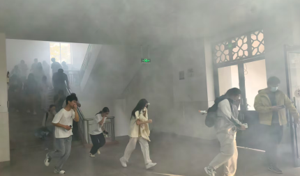 在随后开展的火场疏散演练中,模拟警报响起后,学生在引导人员的指挥下,迅速用湿毛巾捂住口鼻,弯腰低姿,沿指定疏散路线有序、快速地撤离至室外安全集结点。整个过程组织严密、配合顺畅,有效检验了应急预案的可行性和学生的应急反应能力。